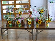 ニュウサイランの飾り付けから始まり、ひまわりの差し込み、4種類の花材の選択と作業が進んで行き、最初は皆同じ様に見えていた「花かっぱ」が、完成するとそれぞれが個性的で愛らしい「花かっぱ」になりました!